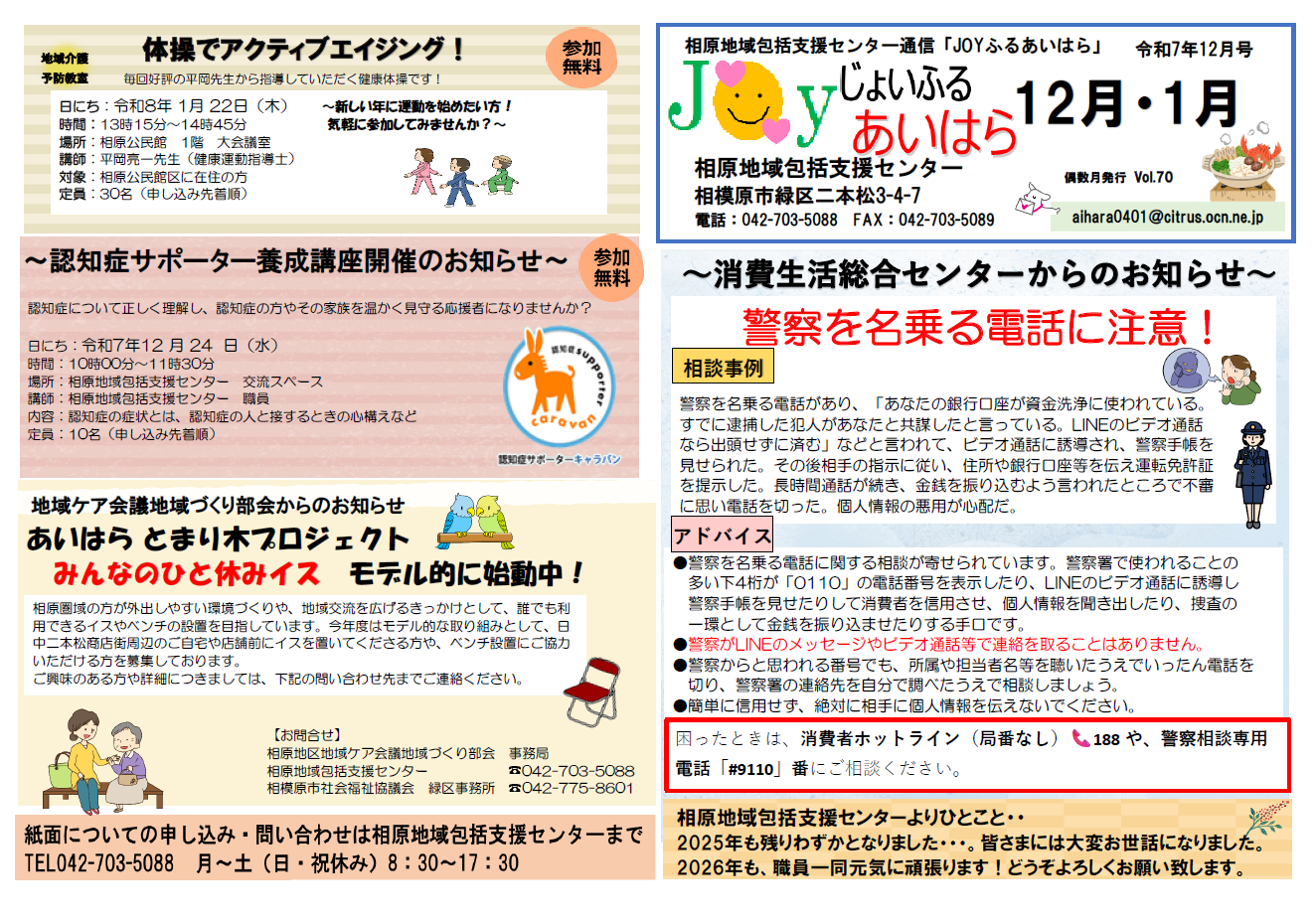 ダウンロード・印刷の際はこちらをどうぞ 「じょいふるあいはら 2025.12,2026.1 号」
