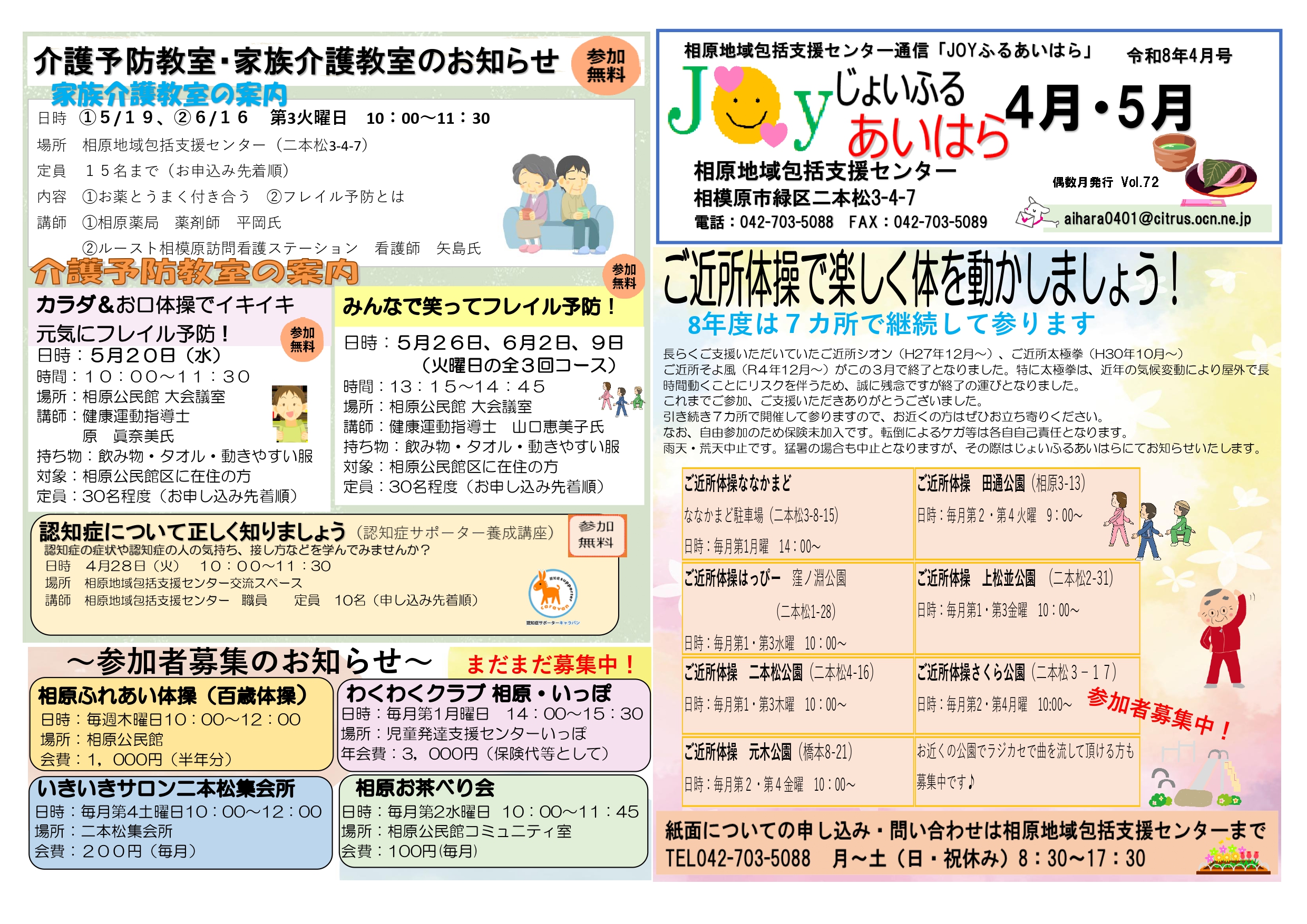 じょいふるあいはら 2026年4.5月号を発行しました!!